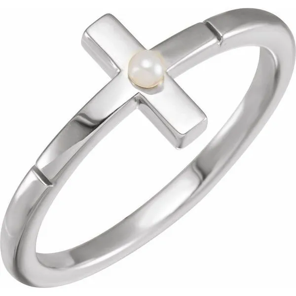 (941) 953-5871Pearl Sideways Cross Ring